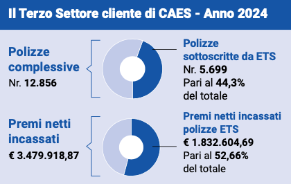 L’obiettivo primario di CAES è quello di rispondere ai bisogni del mondo non profit, offrendo protezione essenzialmente agli enti del Terzo settore (Ets), cooperative sociali e associazioni, ma estendendo la propria consulenza anche a famiglie e piccole medie imprese. Nel 2024 gli Ets hanno rappresentato il 44,3% della base clienti, generando oltre il 52% dei premi netti incassati.